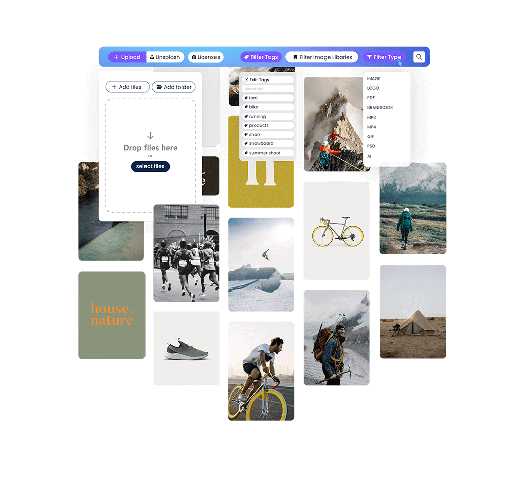 Een belangrijk onderdeel van de tool is het DAM-systeem, waarin je gekochte stockfoto’s of op maat gemaakte foto’s kunt klaarzetten waar iedereen mee kan werken. Zo weet je zeker dat ze makkelijk te vinden zijn én dat er alleen wordt gewerkt met goedgekeurde foto’s.