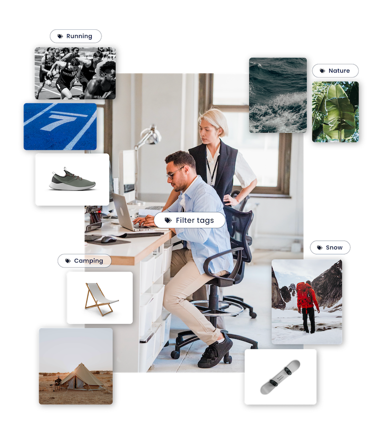 Bestanden kun je eenvoudig uploaden en meteen voorzien van tags (zoekwoorden). Je zoekt op basis van deze tags, waardoor je snel de juiste beelden vindt. Je kunt in een paar minuten tientallen beelden uploaden en aan je collectie toevoegen. Door de tags zijn de afbeeldingen razendsnel terug te vinden. Ze zijn direct zichtbaar en je kunt ze downloaden in verschillende groottes. Zo hoef je maar 1 versie van een beeld op te slaan.Dat scheelt tijd én verwarring.