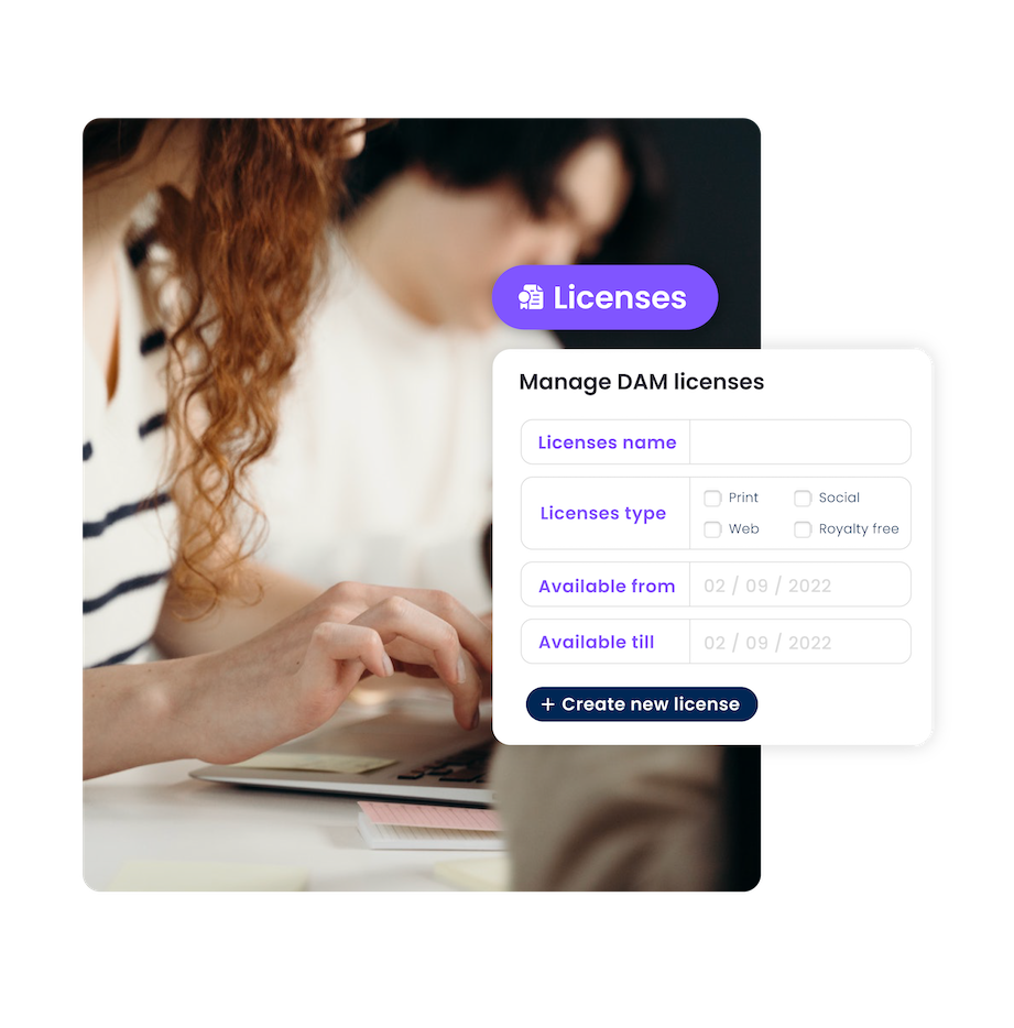 Smart Content Creator voorkomt problemen. Je stelt in voor welke periode de beelden gebruikt mogen worden en in welk type uitingen. Vervolgens vul je in wie de fotograaf of modellen zijn en wie er binnen jullie organisatie verantwoordelijk is voor de gemaakte afspraken. Zijn de rechten op een beeld verlopen, dan wordt het gebruik in nieuwe uitingen automatisch geblokkeerd. Mag het beeld weer gebruikt worden, dan activeer je de rechten en is het beeld weer beschikbaar.
